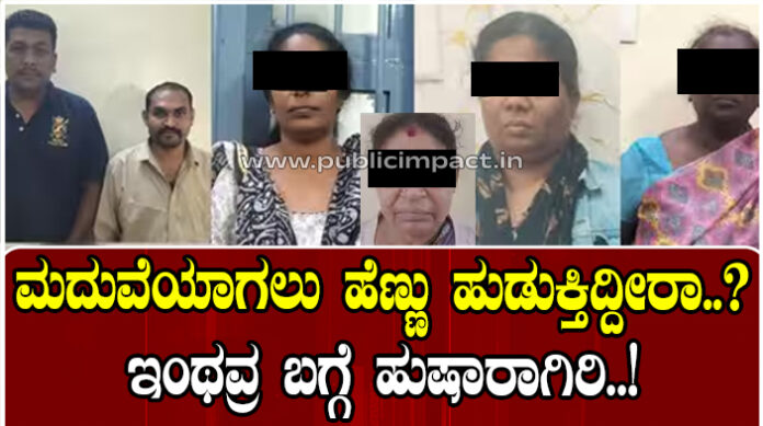 ಬೆಂಗಳೂರು : ಮದುವೆಯಾಗಲು ಹುಡುಗಿ ಹುಡುಕುತ್ತಿರುವ ಯುವಕರಿಗೆ ಯುವತಿಯರನ್ನು ತೋರಿಸುವ ನೆಪದಲ್ಲಿ ವಂಚಿಸುತ್ತಿದ್ದ ಪ್ರಕರಣವೊಂದು ಬೆಂಗಳೂರಿನಲ್ಲಿ ಬೆಳಕಿಗೆ ಬಂದಿದೆ.