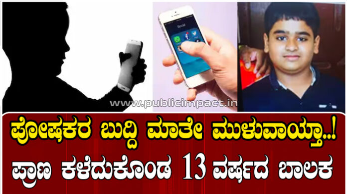 ಮೊಬೈಲ್ ಹೆಚ್ಚು ಬಳಸ್ಬೇಡ, ಚನ್ನಾಗಿ ಓದು ಎಂದಿದ್ದೇ ತಪ್ಪಾಯ್ತಾ..! ಉಡುದಾರದಿಂದ ನೇಣು ಬಿಗಿದು ಪ್ರಾಣ ಕಳೆದುಕೊಂಡ 13 ವರ್ಷದ ಬಾಲಕ..!