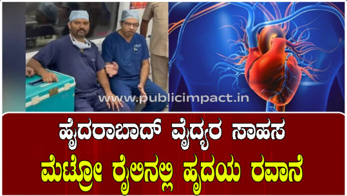 ಹೈದರಾಬಾದ್ ವೈದ್ಯರ ಸಾಹಸ – ಮೆಟ್ರೋ ರೈಲಿನಲ್ಲಿ ಹೃದಯ ಸಾಗಿಸಿ ವ್ಯಕ್ತಿಯೊಬ್ಬರ ಜೀವ ಉಳಿಸಿದ ಡಾಕ್ಟರ್ಸ್..!