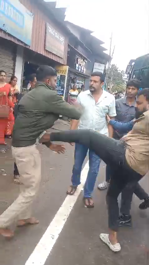 ಸರ್ಕಾರಿ ಬಸ್‌ ಅನ್ನು ಅಡ್ಡಗಟ್ಟಿದ ಖಾಸಗಿ ಬಸ್‌ ಚಾಲಕ ಹಾಗೂ ನಿರ್ವಾಹಕ ಸಿನಿಮೀಯ ಮಾದರಿಯಲ್ಲಿ ಹಲ್ಲೆ ನಡೆಸಿದ್ದಾರೆ. ಖಾಸಗಿ ಬಸ್‌ ಚಾಲಕ ದೂರದಿಂದ ಓಡಿ ಬಂದು ಸರ್ಕಾರಿ ಬಸ್‌ ಚಾಲಕ ಯಶವಂತ ಎಂಬವರ ಹೊಟ್ಟೆಯ ಕೆಳಭಾಗಕ್ಕೆ ಒದೆಯುತ್ತಾನೆ. ಬಳಿಕ ನಿರ್ವಾಹಕ ಆತನನ್ನು ಎಳೆದಾಡಿ ಹೊಡೆಯುವುದಲ್ಲದೆ ಸಾರ್ವಜನಿಕವಾಗಿ ಅವಾಚ್ಯ ಶಬ್ದಗಳಿಂದ ನಿಂದಿಸುತ್ತಾನೆ. ಈ ಪ್ರಸಂಗವನ್ನು ಅಲ್ಲಿದ್ದ ಸಾರ್ವಜನಿಕರೊಬ್ಬರು ವೀಡಿಯೋ ಮಾಡಿದ್ದಾರೆ.