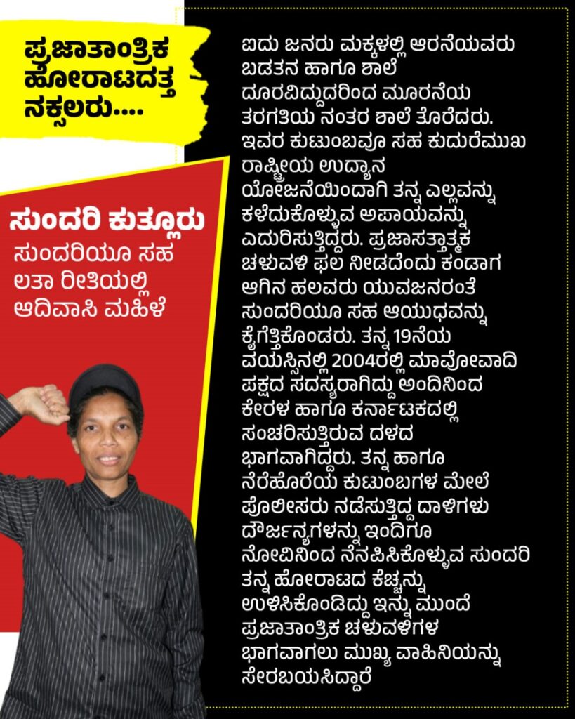 ಚಿಕ್ಕಮಗಳೂರು : ಬಂದೂಕು ಹಿಡಿದು ಕಾಡಿನಲ್ಲಿದ್ದುಕೊಂಡು ಹೋರಾಟ ಮಾಡುತ್ತಿದ್ದ ೦೬ ಮಂದಿ ನಕ್ಸಲರು ಇಂದು ಬಂದೂಕು ಬಿಟ್ಟು ಸಮಾಜದ ಮುಖ್ಯವಾಹಿನಿಗೆ ಮರಳಿದ್ದಾರೆ. ಮುಖ್ಯಮಂತ್ರಿ ಸಿದ್ದರಾಮಯ್ಯ ಅವರ ಸಮ್ಮುಖದಲ್ಲಿ ಶರಣಾದ ನಕ್ಸಲರು ಯಾರು? ಅವರ ಹಿನ್ನೆಲೆ ಏನು? ಅವರು ಬಂದೂಕು ಹಿಡಿದು ಕಾಡು ಸೇರಲು ಕಾರಣವಾಗಿದ್ದೇನು ಎಂಬಿತ್ಯಾದಿ ವಿಚಾರಗಳ ಸಂಕ್ಷಿಪ್ತ ಮಾಹಿತಿ ಇಲ್ಲಿದೆ ನೋಡಿ…