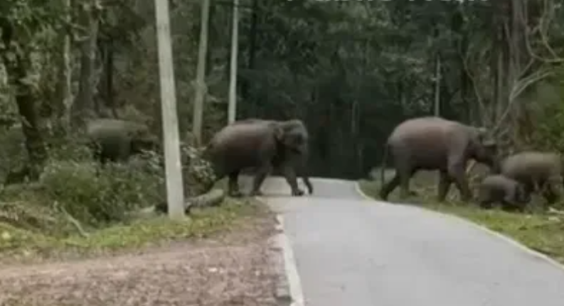 ಆನೆಗಳ ಹಿಂಡು ತನ್ನ ಮರಿಗಳ ಜೊತೆ ರಸ್ತೆ ದಾಟುವುದನ್ನ ಅಲ್ಲಿನ ಸ್ಥಳಿಯರು ತನ್ನ ಮೊಬೈಲ್‌ ನಲ್ಲಿ ದೃಶ್ಯ ಸೆರೆಹಿಡಿದಿದ್ದಾರೆ.