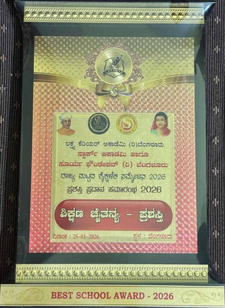 ಮೂಡಿಗೆರೆ: ಲಕ್ಷ್ಯ ಕೇರಿಯರ್ ಆಕಾಡೆಮಿ, ಸ್ಟಾರ್ ಆಕಾಡೆಮಿ ಮತ್ತು ಸೂರ್ಯ ಫೌಂಡೇಷನ್‌ ಅವರ ಸಹಯೋಗದಲ್ಲಿ ರಾಜ್ಯ ಮಟ್ಟದ ಶೈಕ್ಷಣಿಕ ಸಮ್ಮೇಳನ ಹಾಗೂ ಪ್ರಶಸ್ತಿ ಪ್ರಧಾನ ಕಾರ್ಯಕ್ರಮ ಆಯೋಜಿಸಲಾಗಿದ್ದು ಮೂಡಿಗೆರೆಯ ನಳಂದ ಆಂಗ್ಲ ಮಾಧ್ಯಮ ಪ್ರೌಢಶಾಲೆಗೆ ಶಿಕ್ಷಣ ಚೈತನ್ಯ ಪ್ರಶಸ್ತಿ ಲಭಿಸಿದೆ.