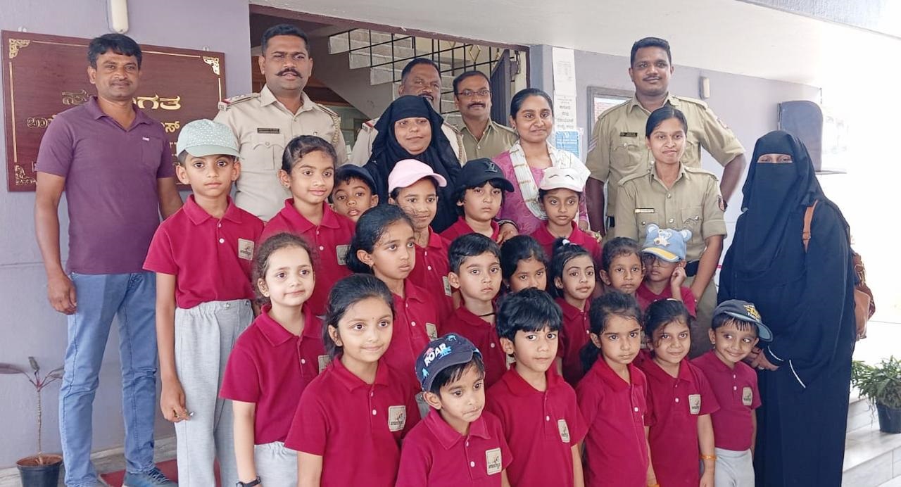 ಪಟ್ಟಣದ ಪೊಲೀಸ್ ಠಾಣೆಗೆ ಅನಂತ್ಯ ಶಾಲೆಯ ವಿದ್ಯಾರ್ಥಿಗಳು ತಮ್ಮ ಶಿಕ್ಷಕರೊಂದಿಗೆ ಆಗಮಿಸಿ ಪೊಲೀಸ್ ಠಾಣೆಯ ಮತ್ತು ಕಾನೂನು ರಕ್ಷಣೆಯ ಬಗ್ಗೆ ಮಾಹಿತಿ ಪಡೆಯುವ ಸಂದರ್ಭದಲ್ಲಿ ಸಣ್ಣ ಮಕ್ಕಳಿಗೆ ಠಾಣೆಯ ಪರಿಚಯ ಹಾಗೂ ಅಪರಾಧ ಪ್ರಕರಣಗಳ ಬಗ್ಗೆ ಹಾಗೂ ಕಾನೂನಿನ ಬಗ್ಗೆ ಮಾಹಿತಿ ನೀಡಿದರು.