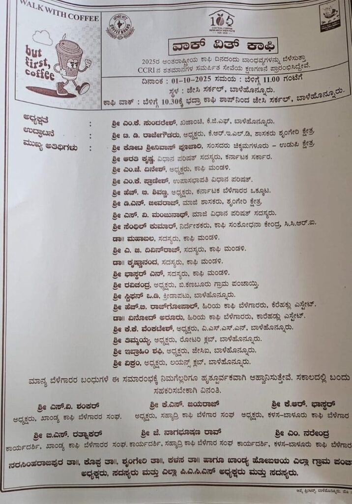 ಬಾಳೆಹೊನ್ನೂರು: 2025ರ ಅಂತರಾಷ್ಟ್ರೀಯ ಕಾಫಿ ದಿನ: ವಾಕ್‌ ವಿತ್‌ ಕಾಫಿ ಕಾರ್ಯಕ್ರಮ!