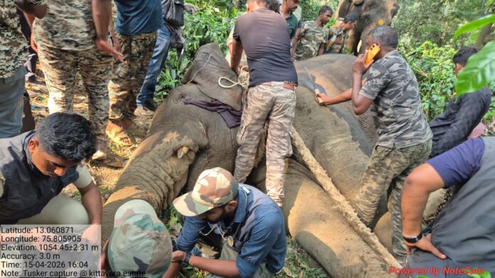 ಬೇಲೂರು ತಾಲೂಕಿನ ಅರೇಹಳ್ಳಿ ಹೋಬಳಿ ವ್ಯಾಪ್ತಿಯ ಕಣಗುಪ್ಪೆ ಗ್ರಾಮದಲ್ಲಿ ಕಳೆದ ಭಾನುವಾರ ರಾಜಶೆಟ್ಟಿ ಎಂಬುವವರ ಮೇಲೆ ಕಾಡಾನೆ ದಾಳಿ ನಡೆಸಿ ಬಲಿ ಪಡೆದ ಘಟನೆಗೆ ಸಂಬಂಧಿಸಿದಂತೆ ಅರಣ್ಯ ಇಲಾಖೆ ಕಾಡಾನೆಯನ್ನು ಸೆರೆ ಹಿಡಿಯಲು ವಿಶೇಷ ಕಾರ್ಯಚರಣೆ ನಡೆಸಿದ ಹಿನ್ನೆಲೆ ಯಶಸ್ವಿಯಾಗಿ ಕಾಡಾನೆಯನ್ನು ಸೆರೆ ಹಿಡಿದಿದ್ದಾರೆ.