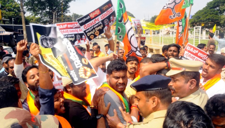 ಬಿಜೆಪಿ ಕಚೇರಿಯಿಂದ ಮೆರವಣಿಗೆ ಹೊರಟ ಪ್ರತಿಭಟನಾಕಾರರು ನಗರದ ಅಜಾದ್ ವೃತ್ತದಲ್ಲಿ ಸಮಾವೇಶಗೊಂಡು ಸರ್ಕಾರದ ವಿರುದ್ಧ ಘೋಷಣೆ ಕೂಗಿ ಗೃಹಸಚಿವ ಡಾ. ಜಿ. ಪರಮೇಶ್ವರ್ರವರ ರಾಜೀನಾಮೆಗೆ ಒತ್ತಾಯಿಸಿ ಪ್ರತಿಭಟನೆ ನಡೆಸಿದರು.
