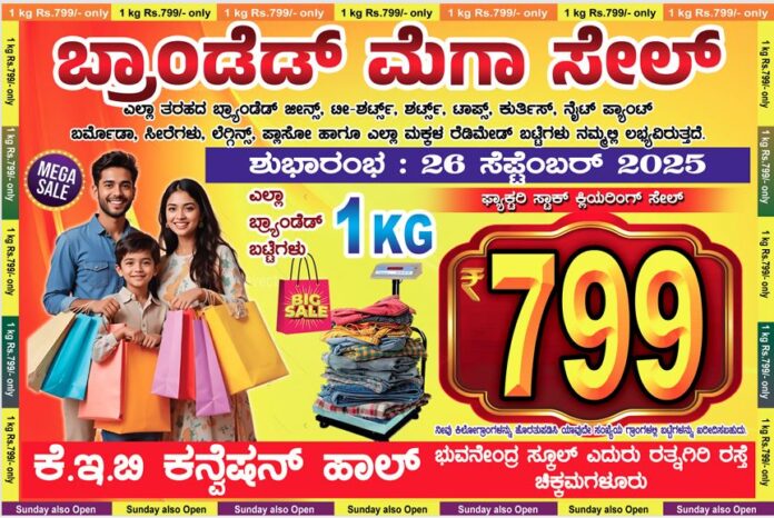ಚಿಕ್ಕಮಗಳೂರು: ನಗರದಲ್ಲಿ ಬ್ರ್ಯಾಂಡೆಡ್ ಮೆಗಾ ಸೇಲ್‌ ಆರಂಭ: ನಿಮಗೆ ಬೇಕಾಗಿದ್ದನ್ನ ತೆಗೆದುಕೊಳ್ಳಿ!