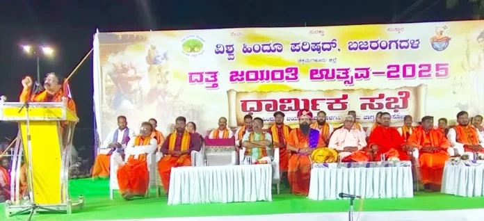 ದತ್ತಮಾಲಾ ಅಭಿಯಾನದ ಹಿನ್ನೆಲೆಯಲ್ಲಿ ನಡೆದ ಶೋಭಾಯಾತ್ರೆಯ ಧರ್ಮಸಭೆಯನ್ನುದ್ದೇಶಿಸಿ ಮಾತನಾಡಿದ ಅವರು, ದತ್ತ ಪೀಠದ ವಿಷಯದಲ್ಲಿ ಯಾವುದೇ ಕಾರಣಕ್ಕೂ ಸರ್ಕಾರದ ಹಸ್ತಕ್ಷೇಪ ಇರಬಾರದು. ಅಲ್ಲಿಯವರೆಗೆ ನಮ್ಮ ಹೋರಾಟ ಮುಂದುವರಿಯುತ್ತದೆ ಎಂದು ಹೇಳಿದರು.