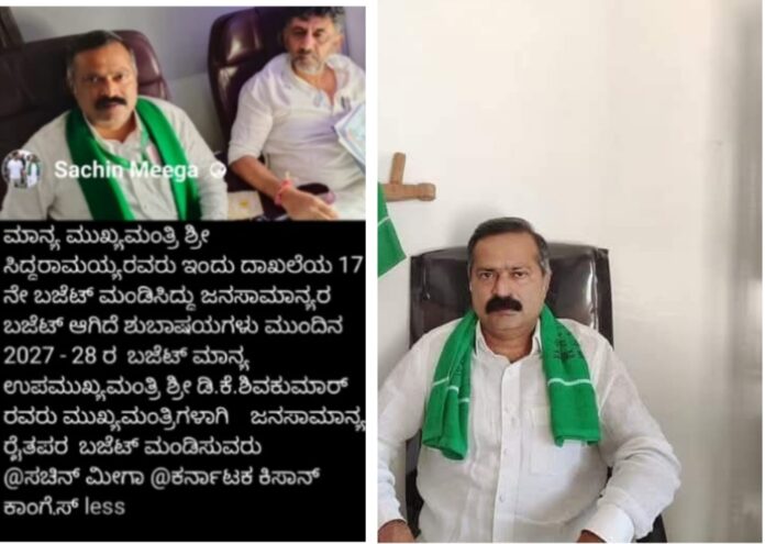 ಚಿಕ್ಕಮಗಳೂರು: ಬಜೆಟ್ ಮುಗಿದ ತಕ್ಷಣ ರಾಜ್ಯದಲ್ಲಿ ಮತ್ತೆ ಕುರ್ಚಿ ಕದನ ಆರಂಭವಾಗುವ ಲಕ್ಷಣ ಕಾಣಿಸಿಕೊಂಡಿದೆ. ಈ ಬಾರಿ ಸಿದ್ದರಾಮಯ್ಯ ಬಜೆಟ್ ಮುಗೀತು. ಮುಂದಿನ ಬಜೆಟ್ ಡಿಕೆಶಿಯವರದ್ದು ಎಂದು ಡಿಸಿಎಂ ಡಿ.ಕೆ ಶಿವಕುಮಾರ್‌ ಅವರ ಆಪ್ತ ಹಾಗೂ ಕಾಂಗ್ರೆಸ್ಸಿನ ಕಿಸಾನ್ ಘಟಕದ ರಾಜ್ಯಾಧ್ಯಕ್ಷ ಸಚಿನ್ ಮೀಗಾ ಫೇಸ್‌ಬುಕ್‌ನಲ್ಲಿ ಪೋಸ್ಟ್‌ ಮಾಡಿದ್ದಾರೆ.