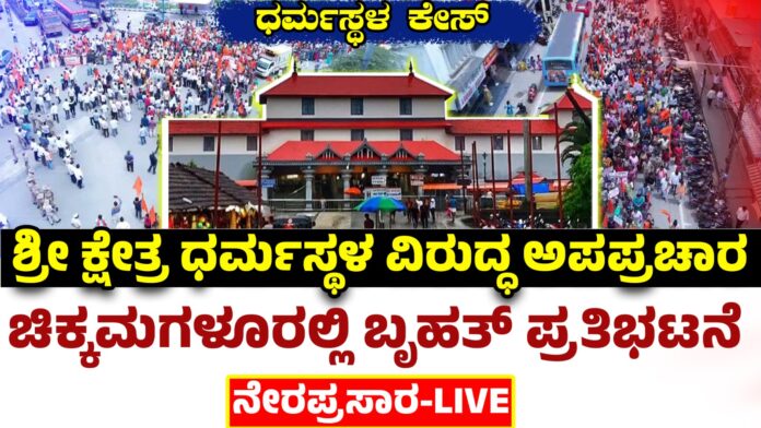 ಚಿಕ್ಕಮಗಳೂರು: ಹಿಂದೂಗಳ ಶ್ರದ್ಧಾ ಕೇಂದ್ರವಾದ ಶ್ರೀ ಕ್ಷೇತ್ರ ಧರ್ಮಸ್ಥಳದ ಬಗ್ಗೆ ಅಪಪ್ರಚಾರ ನಡೆಸಿ ಕ್ಷೇತ್ರದ ಪಾವಿತ್ರ್ಯಕ್ಕೆ ಕಳಂಕ ತರುವ ಷಡ್ಯಂತ್ರ ರೂಪಿಸುತ್ತಿರುವವರ ವಿರುದ್ಧ ಕ್ರಮ ಕೈಗೊಳ್ಳಬೇಕೆಂದು ಆಗ್ರಹಿಸಿ ನಗರದ ಹನುಮಂತಪ್ಪ ವೃತ್ತದಿಂದ ಆಜಾದ್ ಪಾರ್ಕ್ ವೃತ್ತದವರೆಗೆ ಬೃಹತ್ ಪ್ರತಿಭಟನೆ