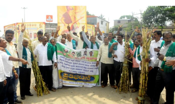 ಈ ವೇಳೆ ಮಾತನಾಡಿದ ರೈತ ಸಂಘದ ಜಿಲ್ಲಾ ಘಟಕ ಅಧ್ಯಕ್ಷ ಡಿ.ಮಹೇಶ್, ‘ಕಬ್ಬಿಗೆ ನಿಗದಿತ ದರ ನೀಡುವಂತೆ ಬೆಳಗಾವಿಯಲ್ಲಿ ಚಳವಳಿ ನಡೆಸುತ್ತಿರುವ ರೈತರನ್ನು ಬೆಂಬಲಿಸಲು ಹೋರಾಟ ನಡೆಸಲಾಗುತ್ತಿದೆ’ ಎಂದರು.