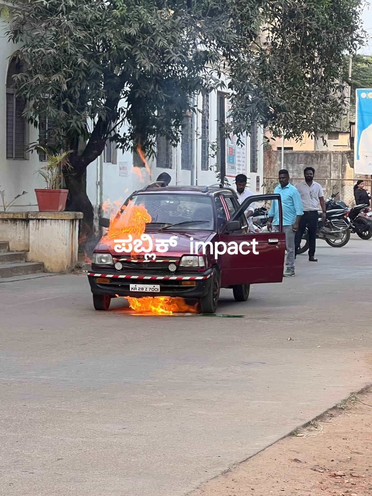 ಕಾರಿನಲ್ಲಿನ ತಾಂತ್ರಿಕ ದೋಷದಿಂದ ಬೆಂಕಿ ಕಾಣಿಸಿಕೊಂಡಿದ್ದು, ಸ್ಥಳದಲ್ಲಿದ್ದವರು ಕಾರಿನಲ್ಲಿ ಹತ್ತಿಕೊಂಡ ಬೆಂಕಿಯನ್ನು ನಂದಿಸಲು ಮುಂದಾಗದೆ ಮೊಬೈಲ್‌ಗಳಲ್ಲಿ ಚಿತ್ರೀಕರಿಸಿಕೊಳ್ಳುತ್ತಿದ್ದರು. ಆಸ್ಪತ್ರೆಯ ಸಿಬ್ಬಂದಿಗಳು ಸ್ಥಳದಲ್ಲೇ ನಿಂತು ನೋಡುತ್ತಿದ್ದರು ಹೊರತು ಬೆಂಕಿ ನಂದಿಸಲು ಮುಂದಾಗ ಲಿಲ್ಲ.