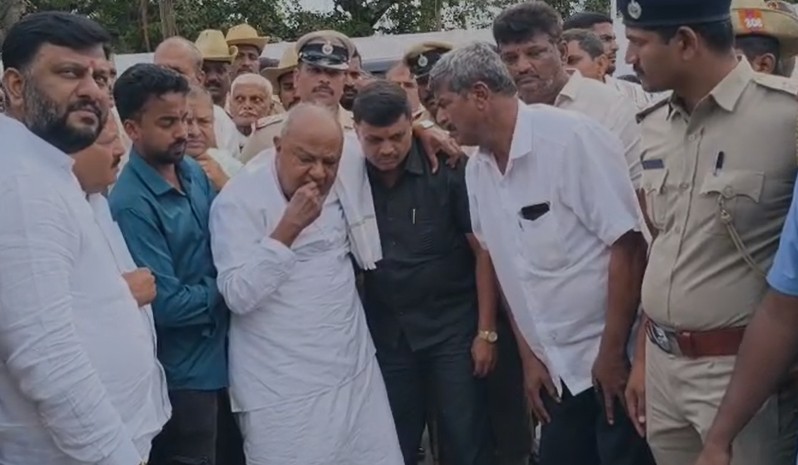 ಹಾಸನ ದುರಂತದಲ್ಲಿ 10 ಮಂದಿ ಸಾವು ಪ್ರಕರಣಕ್ಕೆ ಸಂಬಂಧಪಟ್ಟಂತೆ ಮೃತರ ಕುಟುಂಬಸ್ಥರಿಗೆ ಜೆಡಿಎಸ್ ವರಿಷ್ಠ, ಮಾಜಿ ಪ್ರಧಾನಿ ದೇವೇಗೌಡ ಸಾಂತ್ವನ ಹೇಳಿದ್ದಾರೆ.