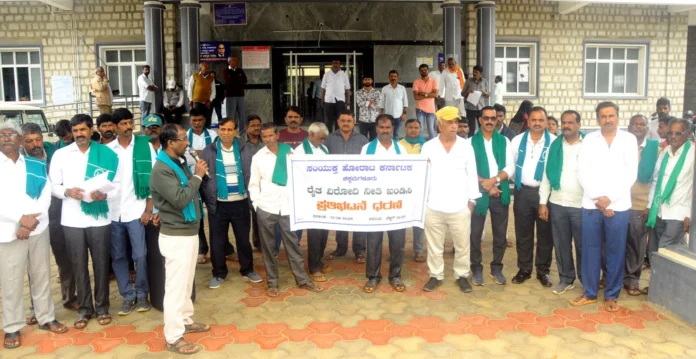 ಸಂಯುಕ್ತ ಕಿಸಾನ್ ಮೋರ್ಚಾದ ಜಿಲ್ಲಾ ಸಂಚಾಲಕ ಗೌಸ್ಮೊಹಿಯುದ್ದೀನ್, ರೈತ ಸಂಘದ ಜಿಲ್ಲಾಧ್ಯಕ್ಷ ಡಿ.ಮಹೇಶ್, ಪ್ರಧಾನಕಾರ್ಯದರ್ಶಿ ಎಂ.ಬಿ.ಚಂದ್ರಶೇಖರ್, ರೈತ ಮುಖಂಡ ಗುರುಶಾಂತಪ್ಪ, ತಾಲೂಕು ಅಧ್ಯಕ್ಷ ವೈ.ಸಿ.ಸುನಿಲ್ಕುಮಾರ್, ಡಿ.ಆರ್.ಪುಟ್ಟಸ್ವಾಮೇಗೌಡ, ದೇವರಾಜೇಗೌಡ ಇದ್ದರು.