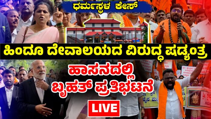 ಹಾಸನ: ಧರ್ಮಸ್ಥಳದ ವಿರುದ್ಧ ಸಾಮಾಜಿಕ ಜಾಲತಾಣದಲ್ಲಿ ಅವಹೇಳನಕಾರಿ ಹೇಳಿಕೆ ಖಂಡಿಸಿ ಹಾಸನದಲ್ಲಿ ಬೃಹತ್ ಪ್ರತಿಭಟನೆ ನಡೆಸಲಾಯಿತು.