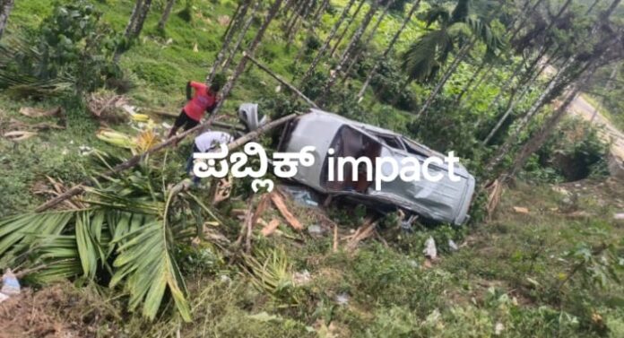 ಮಂಗಳೂರಿನಿಂದ ಬೇಲೂರು ಕಡೆಗೆ ತೆರಳುತ್ತಿದ್ದ ಇನ್ನೋವಾ ಕಾರು ರಸ್ತೆ ತಿರುವಿನಲ್ಲಿ ನಿಯಂತ್ರಣ ಸಿಗದೇ ಅಡಿಕೆ ತೋಟಕ್ಕೆ ಬಿದ್ದಿದೆ. ಘಟನೆಯಲ್ಲಿ ಕಾರು ಚಾಲಕ ಮಹಮದ್ (30) ಎಂಬುವವರಿಗೆ ಗಾಯಗಳಾಗಿದ್ದು, ಆಸ್ಪತ್ರೆಗೆ ರವಾನಿಸಲಾಗಿದೆ. ಕಾರು ಬಿದ್ದ ರಭಸಕ್ಕೆ ಮೂರು ಅಡಿಕೆ ಮರಗಳು ಮುರಿದು ಹೋಗಿದ್ದು, ಇನ್ನೋವಾ ಕಾರು ಸಂಪೂರ್ಣ ನಜ್ಜುಗುಜ್ಜಾಗಿದೆ.