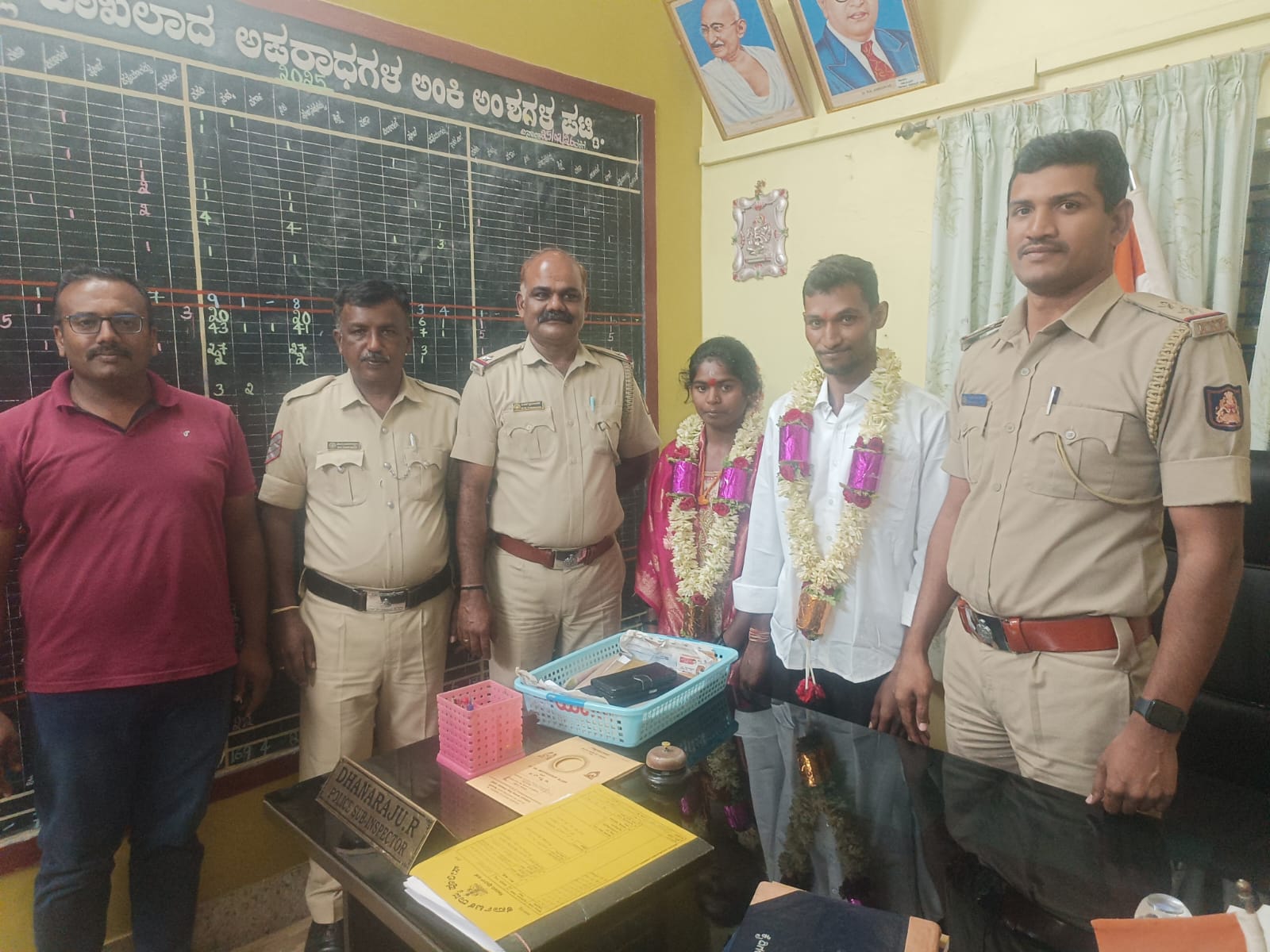 ಬಳಿಕ ಪ್ರೇಮಿಗಳು ಪೊಲೀಸ್ ಠಾಣೆಗೆ ತೆರಳಿ , ಸಬ್ ಇನ್ಸ್ಪೆಕ್ಟರ್ ಧನರಾಜ್, ಎ ಎಸ್ ಐ ಶ್ರೀನಿವಾಸ್ ಸೇರಿದಂತೆ ಪೊಲೀಸ್ ಸಿಬ್ಬಂದಿಗಳಿಗೆ ಸಿಹಿ ನೀಡಿ ಧನ್ಯವಾದ ಸಲ್ಲಿಸಿದರು. ಇದೇ ಸಂದರ್ಭದಲ್ಲಿ ಸಬ್ ಇನ್ಸ್ಪೆಕ್ಟರ್ ಧನರಾಜ್, ನವ ಜೋಡಿಗೆ ಶುಭಾಶಯ ತಿಳಿಸಿ ಆದರ್ಶ ಜೀವನ ಮಾಡುವಂತೆ ಬುದ್ಧಿ ಹೇಳಿ ಕಳುಹಿಸಿಕೊಟ್ಟರು.
