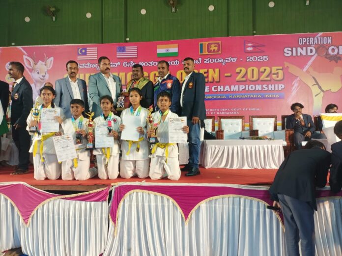 ಚಿಕ್ಕಮಗಳೂರು: ಭಾನುವಾರ ಶಿವಮೊಗ್ಗದ ನೆಹರು ಇಂಡೋರ್ ಸ್ಟೇಡಿಯಂ ನಲ್ಲಿ ನಡೆದ ಅಂತರಾಷ್ಟ್ರೀಯ ಮಟ್ಟದ ಕರಾಟೆ ಪಂದ್ಯಾವಳಿಯಲ್ಲಿ, ಈ ಐಡಿಯಲ್ ಸ್ಪೋರ್ಟ್ಸ್ ಮಾರ್ಷಲ್ ಆರ್ಟ್ ಕರಾಟೆ ಅಸೋಸಿಯೇಷನ್ ಆಫ್ ಚಿಕ್ಕಮಗಳೂರು, ಜಯಪುರ ಕರಾಟೆ ಶಾಲೆಯ ವಿದ್ಯಾರ್ಥಿಗಳು ಭಾಗವಹಿಸಿ ಪ್ರಶಸ್ತಿ ಹಾಗೂ ಪದಕಗಳನ್ನು ಪಡೆದುಕೊಂಡರು.