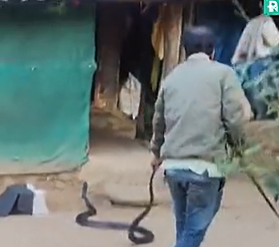 ಬಳಿಕ ಸ್ಥಳಕ್ಕೆ ಆಗಮಿಸಿದ ಖ್ಯಾತ ಉರಗ ತಜ್ಞ ರಿಜ್ವಾನ್ ಅವರು ಅತ್ಯಂತ ಚಾಣಾಕ್ಷತನದಿಂದ ಕಾಳಿಂಗ ಸರ್ಪವನ್ನು ಸೆರೆಹಿಡಿಯುವಲ್ಲಿ ಯಶಸ್ವಿಯಾಗಿದ್ದಾರೆ.