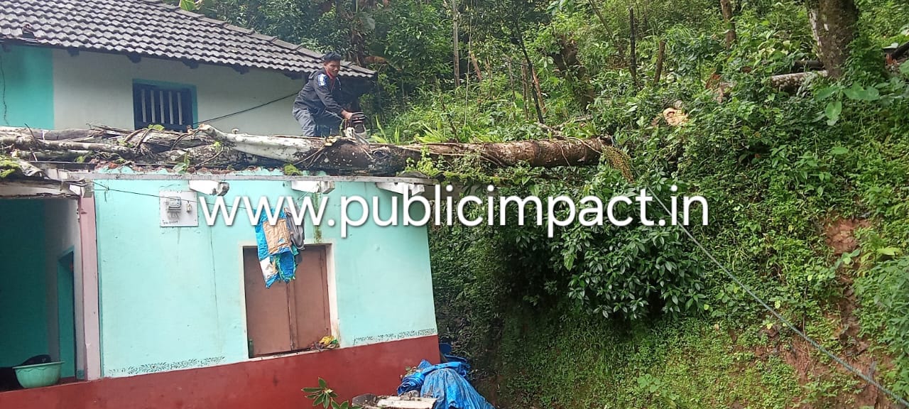ಚಿಕ್ಕಮಗಳೂರು: ಕೊಪ್ಪ ತಾಲೂಕಿನ ಗುಡ್ಡೆತೋಟ ಗ್ರಾಮ ಪಂಚಾಯತಿ ವ್ಯಾಪ್ತಿಯ ಭೈರೆದೇವರು ಗ್ರಾಮದ ಹಂದಿಹಡ್ಲುವಿನಲ್ಲಿ ಶನಿವಾರ ಸುರಿದ ಭಾರೀ ಮಳೆಗೆ ತಡ ರಾತ್ರಿ ಭಾಸ್ಕರ ಭಟ್ ಎಂಬುವವರ ಮನೆ ಮೇಲೆ ಮರ ಬಿದ್ದು ಮನೆಯ ಮೇಲ್ಫಾವಣಿ ಹಾಗೂ ಗೃಹಪಯೋಗಿ ವಸ್ತುಗಳಿಗೆ ಹಾನಿಯಾಗಿದೆ.