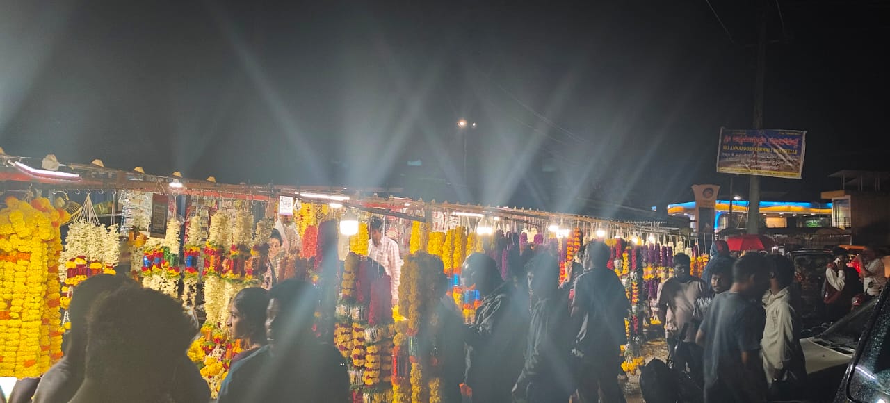 ಯಾವುದೇ ಹಬ್ಬ ಬಂತೆಂದರೆ ಸಾಕು, ವಿವಿಧ ಬಗೆಯ ಹೂವು, ಹಣ್ಣು, ಪೂಜಾ ಸಾಮಗ್ರಿಗಳ ಖರೀದಿಗಾಗಿ ಜನರು ಮಾರ್ಕೆಟ್‌ಗೆ ಮುಗಿಬೀಳುತ್ತಾರೆ. ಅದೇ ರೀತಿ ಇಂದು ಮೂಡಿಗೆರೆಯಲ್ಲಿ ಹೂ ಖರೀದಿ ಮಾಡಲು ಜನವೋ ಜನಜಂಗುಳಿ ಸೇರಿದ್ದು ಮಾತ್ರ ನೋಡಲು ಜಾತ್ರೆ ತರ ಕಾಣುತ್ತಿತ್ತು.