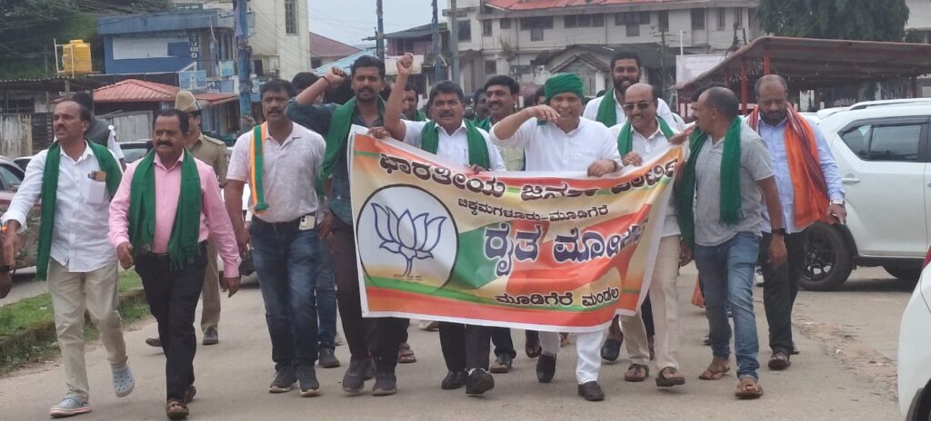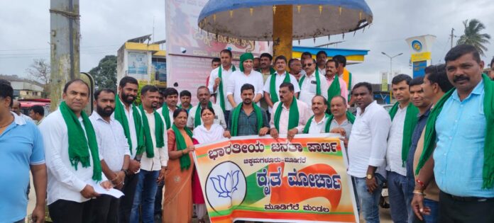 ಮೂಡಿಗೆರೆ: ಬಿಜೆಪಿ ರೈತ ಮೋರ್ಚಾ ವತಿಯಿಂದ ಲಯನ್ಸ್ ವೃತ್ತದಲ್ಲಿ ಮಾನವ ಸರಪಳಿ ನಿರ್ಮಿಸಿ ಕಾಂಗ್ರೆಸ್ ಸರ್ಕಾರದ ವಿರುದ್ದ ಪ್ರತಿಭಟನೆ ನಡೆಸಲಾಯಿತು.