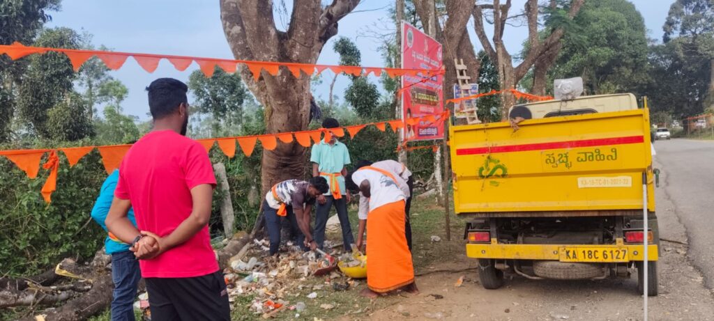 ಕಾರ್ಯಕರ್ತರು ಪಂಚಾಯಿತಿ ಹಾಗೂ ಮುಖ್ಯ ರಸ್ತೆಯ ಇಕ್ಕೆಲಗಳಲ್ಲಿ ಶ್ರಮದಾನದ ಮೂಲಕ ಸ್ವಚ್ಛತಾ ಕಾರ್ಯದಲ್ಲಿ ಭಾಗವಹಿಸಿದರು