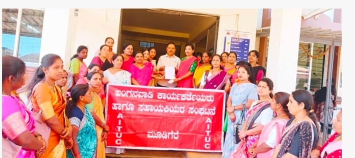 ಮೂಡಿಗೆರೆ: ವಿವಿಧ ಬೇಡಿಕೆ ಈಡೇರಿಕೆಗೆ ಆಗ್ರಹ: AITUC & ಅಂಗನವಾಡಿ ಕಾರ್ಯಕರ್ತೆಯರಿಂದ ಸರ್ಕಾರಕ್ಕೆ ಮನವಿ