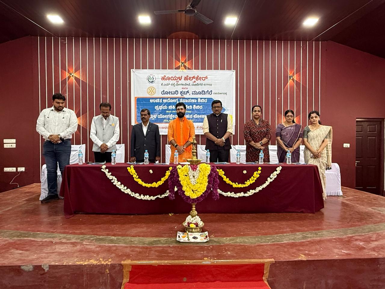 ಮೂಡಿಗೆರೆ : ಹೊಯ್ಸಳ ಹೆಲ್ತ್ ಸೆಂಟರ್ ಹಾಗೂ ರೋಟರಿ ಸಂಸ್ಥೆ ಸಹಯೋಗದಲ್ಲಿ ಉಚಿತ ಆರೋಗ್ಯ ತಪಾಸಣಾ ಶಿಬಿರ ಹಾಗೂ ಪ್ರಥಮ ಚಿಕಿತ್ಸೆ ತರಬೇತಿ ಕಾರ್ಯಕ್ರಮ ಮತ್ತು ಹೊಯ್ಸಳ ಯೋಗಕ್ಷೇಮ ವಾಹನ ಲೋಕಾರ್ಪಣೆ ಕಾರ್ಯಕ್ರಮವನ್ನು ಜೆ ಸಿ. ಹಾಲ್ ನಲ್ಲಿ ಹಮ್ಮಿಕೊಳ್ಳಲಾಯಿತು.