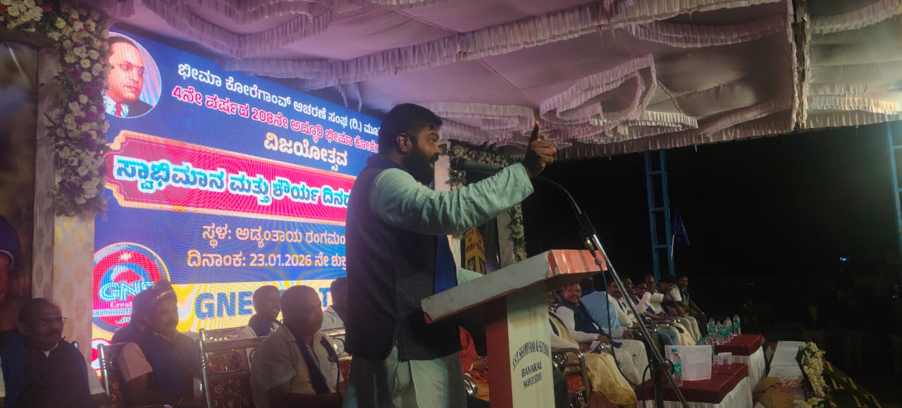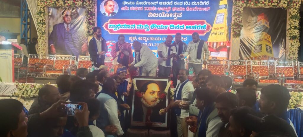 ‘ಕೋರೆಗಾಂವ್ ಯುದ್ದದಲ್ಲಿ 30 ಸಾವಿರ ಪೇಶ್ವೆ ಸೈನಿಕರನ್ನು ಸೋಲಿಸಿದ 500 ಮಹಾರ್ ಸೈನಿಕರ ಪೈಕಿ 22 ಮಂದಿ ಸೈನಿಕರು ಮರಣ ಹೊಂದುತ್ತಾರೆ. ಅವರ ನೆನಪಿಗಾಗಿ ಭೀಮನದಿ ತೀರದಲ್ಲಿ ವಿಜಯಸ್ಥಂಭ ಸ್ಥಾಪಿಸಲಾಗಿದ್ದು, ಪ್ರತಿವರ್ಷ ಲಕ್ಷ ಲಕ್ಷ ಸಂಖ್ಯೆಯಲ್ಲಿ ಭಾಗವಹಿಸುತ್ತಿರುವುದು ಈ ದಿನದ ಶಕ್ತಿ ಎಂದರು