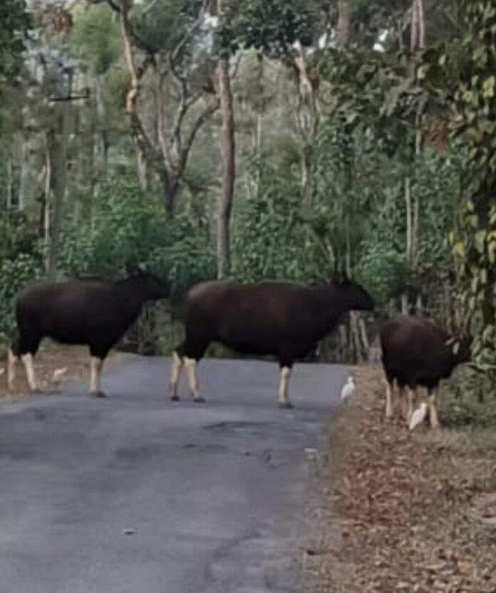 ಹೌದು .. ಮತ್ತಿಕಟ್ಟೆ ರಸ್ತೆಯಲ್ಲಿ ಕೋಣಗಳು ಹಿಂಡು ಹಿಂಡಾಗಿ ಪ್ರತ್ಯಕ್ಷವಾಗಿದ್ದು, ಸಂಜೆ–ಮುಂಜಾನೆ ವೇಳೆಯಲ್ಲಿ ರಸ್ತೆ ದಾಟಿದ 10ರಿಂದ 15 ಕಾಡುಕೋಣಗಳು ಇದರಿಂದ ವಾಹನ ಸವಾರರು ಮತ್ತು ಶಾಲಾ ಮಕ್ಕಳಲ್ಲಿ ಭಯದ ವಾತಾವರಣ ಸೃಷ್ಠಿಯಾಗಿದೆ.