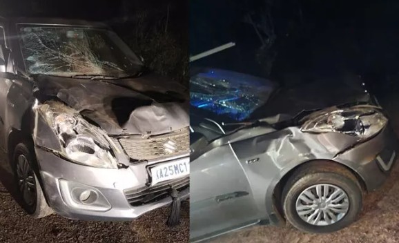 ಚಿಕ್ಕಮಗಳೂರು: ಎನ್.ಆರ್.ಪುರ–ಬಾಳೆಹೊನ್ನೂರು ರಾಜ್ಯ ಹೆದ್ದಾರಿಯ 9ನೇ ಮೈಲಿಕಲ್ಲು ಬಳಿ ಶನಿವಾರ ರಾತ್ರಿ ರಸ್ತೆ ದಾಟುತ್ತಿದ್ದ ಕಾಡಾನೆಗೆ ಕಾರು ಢಿಕ್ಕಿ ಹೊಡೆದ ಘಟನೆ ನಡೆದಿದೆ. ಬುರುಗಮನೆ ಗ್ರಾಮದ ಸಮೀಪದ 9ನೇ ಮೈಲಿ ಅರಣ್ಯ ಪ್ರದೇಶ (ಚಿಕ್ಕ ಅಗ್ರಹಾರ ಅರಣ್ಯ ವ್ಯಾಪ್ತಿ)ದಲ್ಲಿ ಎರಡು ಕಾಡಾನೆಗಳು ರಸ್ತೆ ದಾಟುತ್ತಿದ್ದ ವೇಳೆ ಘಟನೆ ನಡೆದಿದೆ.