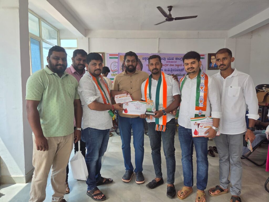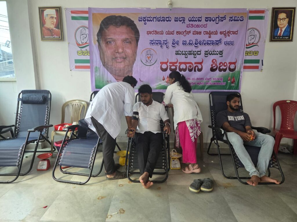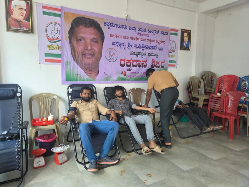 ಎನ್.ಆರ್.ಪುರ: ಚಿಕ್ಕಮಗಳೂರು ಜಿಲ್ಲಾ ಯುವ ಕಾಂಗ್ರೆಸ್ ವತಿಯಿಂದ ಬಾಳೆಹೊನ್ನೂರು ಬ್ಲಾಕ್ ನ ನರಸಿಂಹರಾಜಪುರದ ಕಾಂಗ್ರೆಸ್ ಕಚೇರಿಯಲ್ಲಿ ಯುವ ಕಾಂಗ್ರೆಸ್ʼನ ಮಾಜಿ ರಾಷ್ಟ್ರೀಯ ಅಧ್ಯಕ್ಷರಾದ ಬಿವಿ ಶ್ರೀನಿವಾಸ್ ಅವರ ಹುಟ್ಟು ಹಬ್ಬದ ಪ್ರಯುಕ್ತ ರಕ್ತದಾನ ಶಿಬಿರವನ್ನು ಏರ್ಪಡಿಸಲಾಗಿತ್ತು.