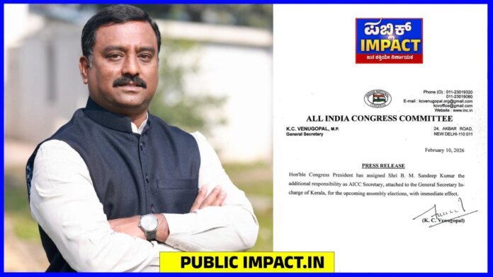 ಚಿಕ್ಕಮಗಳೂರು ಜಿಲ್ಲೆಯ ಯುವ ನಾಯಕ AICC ಕಾರ್ಯದರ್ಶಿಗಳಾದ ಸಂದೀಪ್ ಬಿ. ಎಂ. ಅವರನ್ನು ಕೇರಳ ರಾಜ್ಯದ ಕಾಂಗ್ರೆಸ್ ಪಕ್ಷದ ಚುನಾವಣಾ ಉಸ್ತುವಾರಿಯಾಗಿ ನೇಮಕಗೊಳಿಸಲಾಗಿದೆ