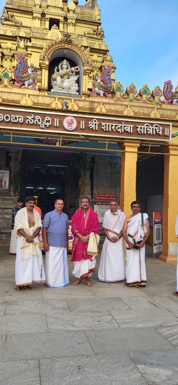 ಹೌದು .. ಕೇಂದ್ರ ಶಿಕ್ಷಣ ಸಚಿವ ಧರ್ಮೇಂದ್ರ ಪ್ರಧಾನ್ ಖಾಸಗಿ ಕಾರ್ಯಕ್ರಮಕ್ಕಾಗಿ ಶೃಂಗೇರಿಗೆ ಆಗಮಿಸಿದ್ದರು. ಈ ಸಂದರ್ಭದಲ್ಲಿ ಶಾರದೆಯ ದರ್ಶನ ಪಡೆದರು ಜಗದ್ಗುರುಗಳ ಆಶೀರ್ವಾದವನ್ನು ಸಹ ಪಡೆದು ಹಿಂತಿರುಗಿದ್ದರು
