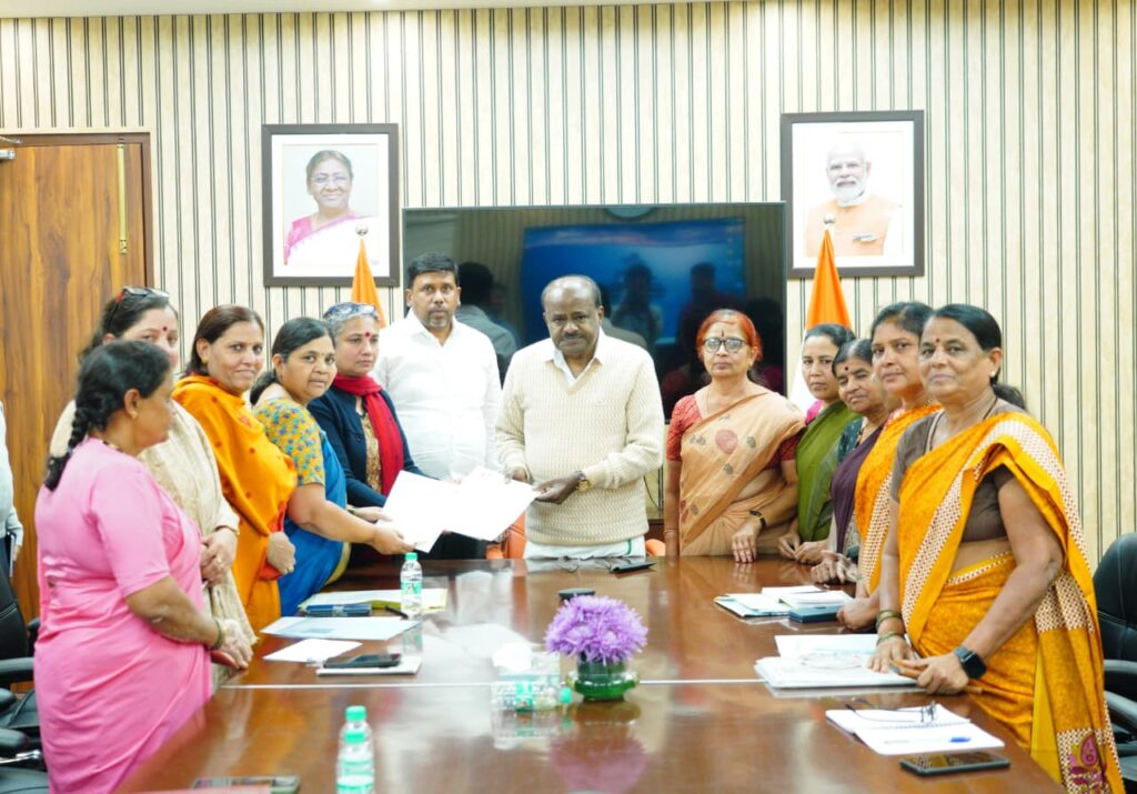 ನವದೆಹಲಿ: ಕೇಂದ್ರದ ಬೃಹತ್ ಕೈಗಾರಿಕೆ ಮತ್ತು ಉಕ್ಕು ಖಾತೆ ಸಚಿವರಾದ ಹೆಚ್.ಡಿ. ಕುಮಾರಸ್ವಾಮಿ ಅವರು ನವದೆಹಲಿಯ ತಮ್ಮ ಗೃಹ ಕಚೇರಿಯಲ್ಲಿ ಅಂಗನವಾಡಿ ಮತ್ತು ಆಶಾ ಕಾರ್ಯಕರ್ತೆಯರ ಪ್ರಮುಖರ ಜತೆ ಮಾತುಕತೆ ನಡೆಸಿದರು.