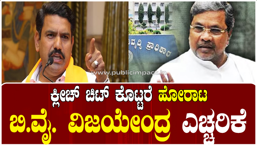 ಶಿವಮೊಗ್ಗ : ಮುಡಾ ಹಗರಣ ಸಂಬಂಧ ತನಿಖೆ ನಡೆಸಿರುವ ಲೋಕಾಯುಕ್ತ ಕೋರ್ಟ್‌ಗೆ ವರದಿ ನೀಡುವ ತಯಾರಿಯಲ್ಲಿದೆ. ಈ ನಡುವೆ ಮುಖ್ಯಮಂತ್ರಿ ವಿರುದ್ಧದ ಆರೋಪಕ್ಕೆ ಕ್ಲೀಚ್‌ ಚಿಟ್‌ ನೀಡಲಾಗುತ್ತಿದೆ ಎಂಬ ವಿಚಾರವೂ ಚರ್ಚೆಯಾಗುತ್ತಿದೆ. ರಾಜಕೀಯ ಒತ್ತಡಕ್ಕೆ ಮಣಿದು ಲೋಕಾಯುಕ್ತ ಕ್ಲೀನ್ ಚಿಟ್ ನೀಡಿದರೆ ಬಿಜೆಪಿ ಹೋರಾಟ ನಡೆಸಲಿದೆ ಎಂದು ಪಕ್ಷದ ರಾಜ್ಯಾಧ್ಯಕ್ಷ ಬಿ.ವೈ.ವಿಜಯೇಂದ್ರ ಹೇಳಿದ್ದಾರೆ.