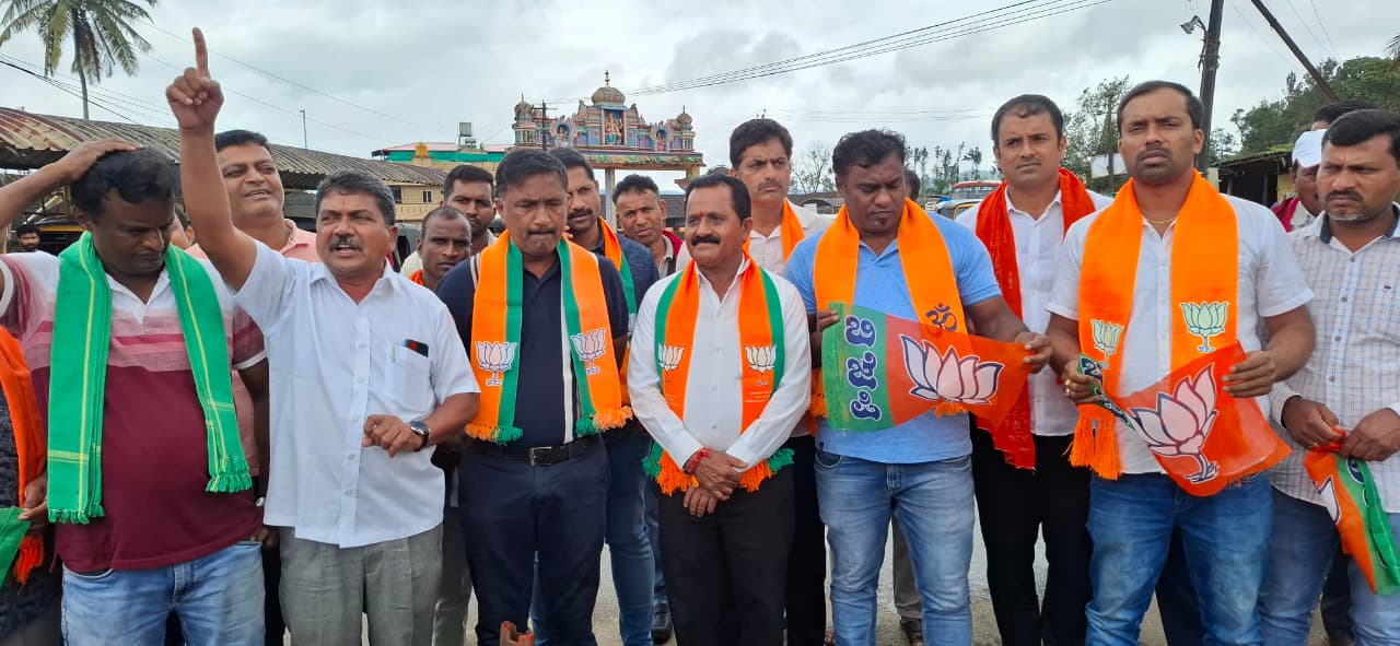ಪ್ರತಿಭಟನೆಯಲ್ಲಿ ಬಿಜೆಪಿ ನಾಯಕರು ಗಳಾದ ಅನುಕುಮಾರ್ ಪಟ್ಟದ್ದುರು.ಪಂಚಾಕ್ಷರಿ ಹಾಲೂರು.. ಯುವ ಮೋರ್ಚಾ ಪದಾಧಿಕಾರಿಗಳಾದ ಸುನಿಲ್ ಮಣ್ಣಿಕೆರೆ. ಮನೋಜ್ ಕಿರಗುಂದ.ಅವಿನಾಶ್ ಜನ್ನಾಪುರ. ಅರುಣ್ ಕುಂಬಾರಡಿ, ಪ್ರಸಾದ್ ಹುಲ್ಲೆಮನೆ,ತಾರೇಶ್ ಜೇನುಬೈಲ್. ಪ್ರಶಾಂತ್ ಬೀಳಗುಳ. ಧನಿಕ್ ಕೊಡದಿಣ್ಣೆ ಸೇರಿದಂತೆ ಅನೇಕರು ಇದ್ದರು